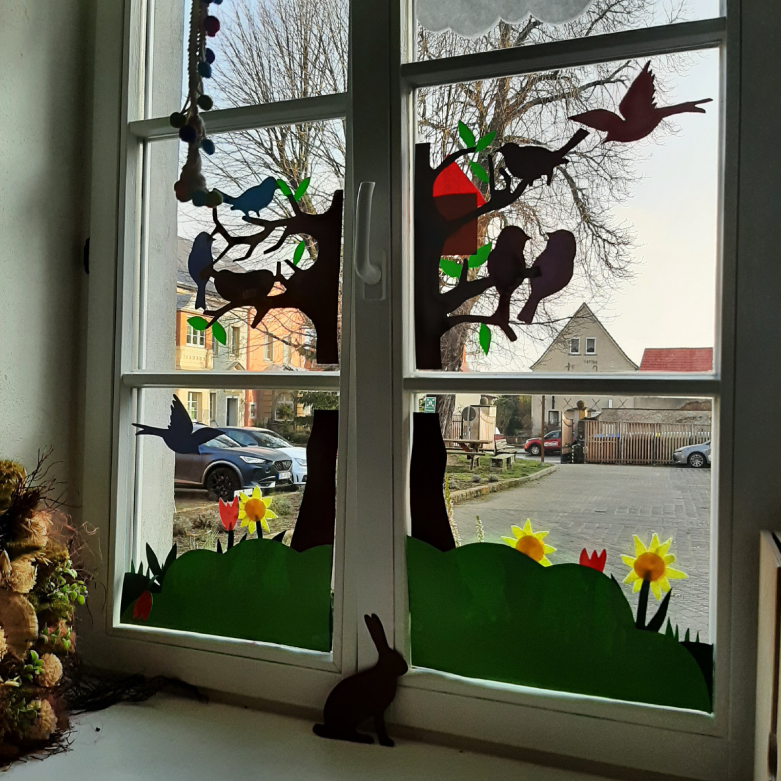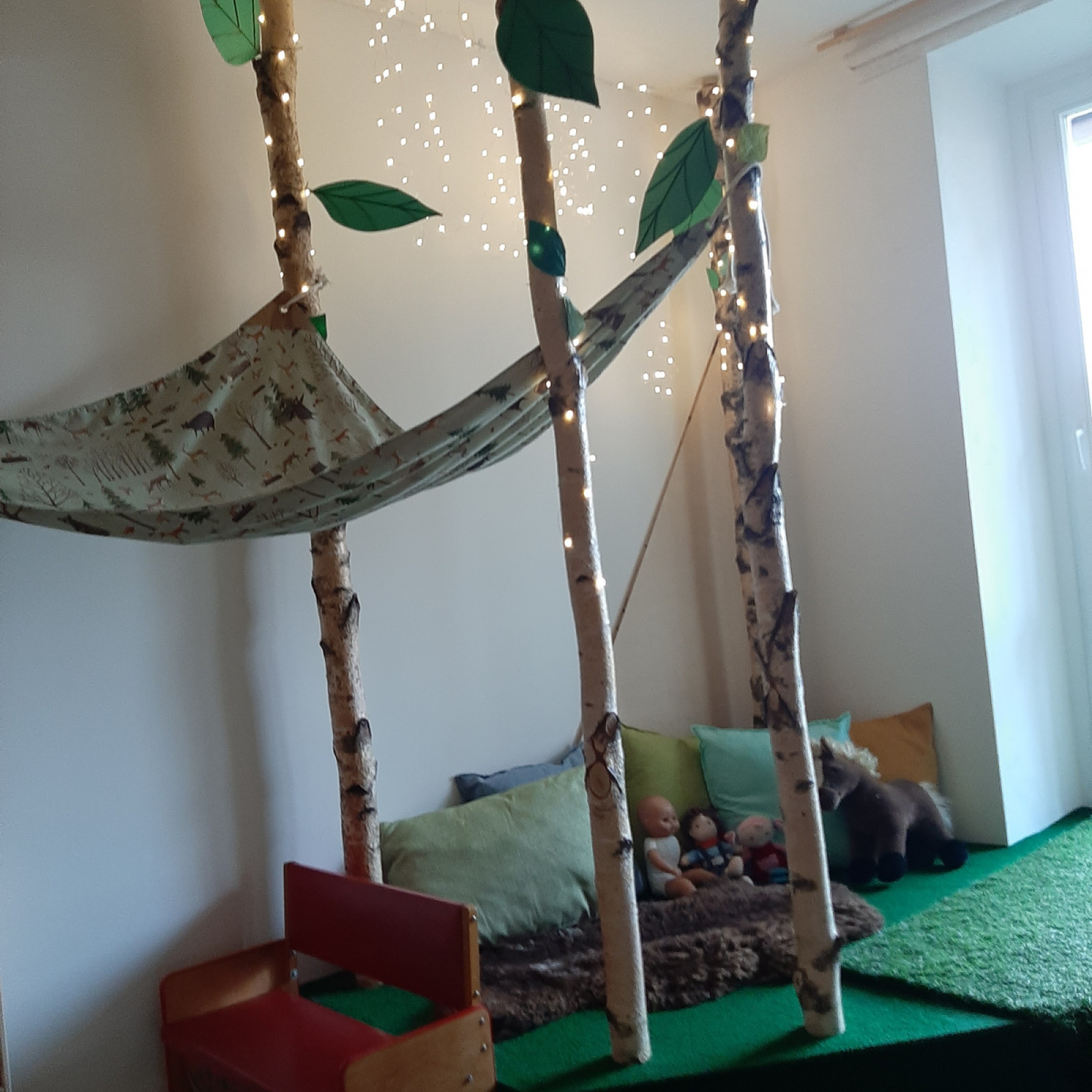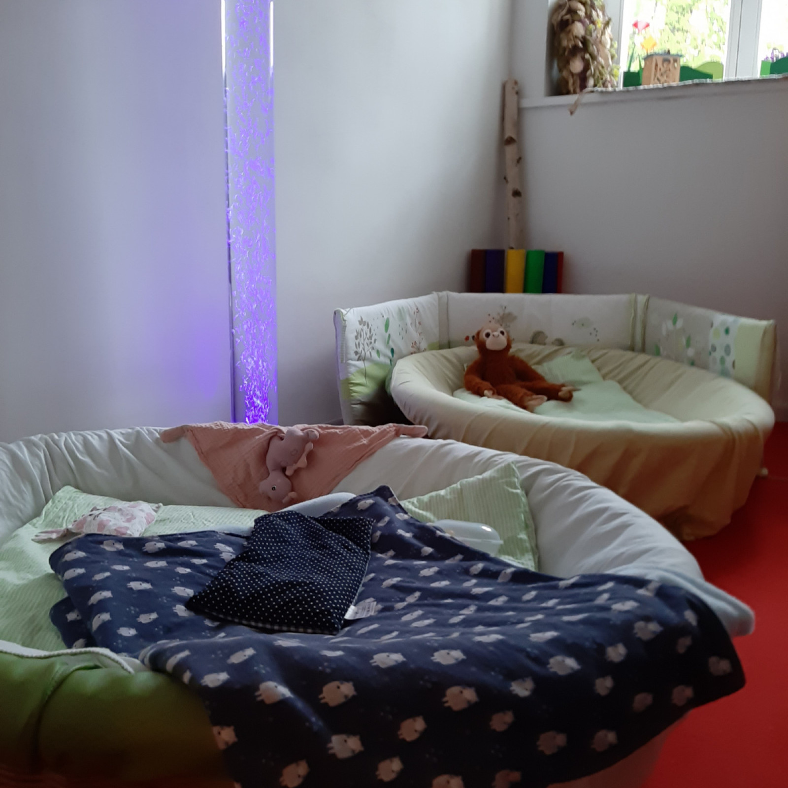 der Balkontür. Somit können die Kinder zu jeder Zeit nach draußen schauen und