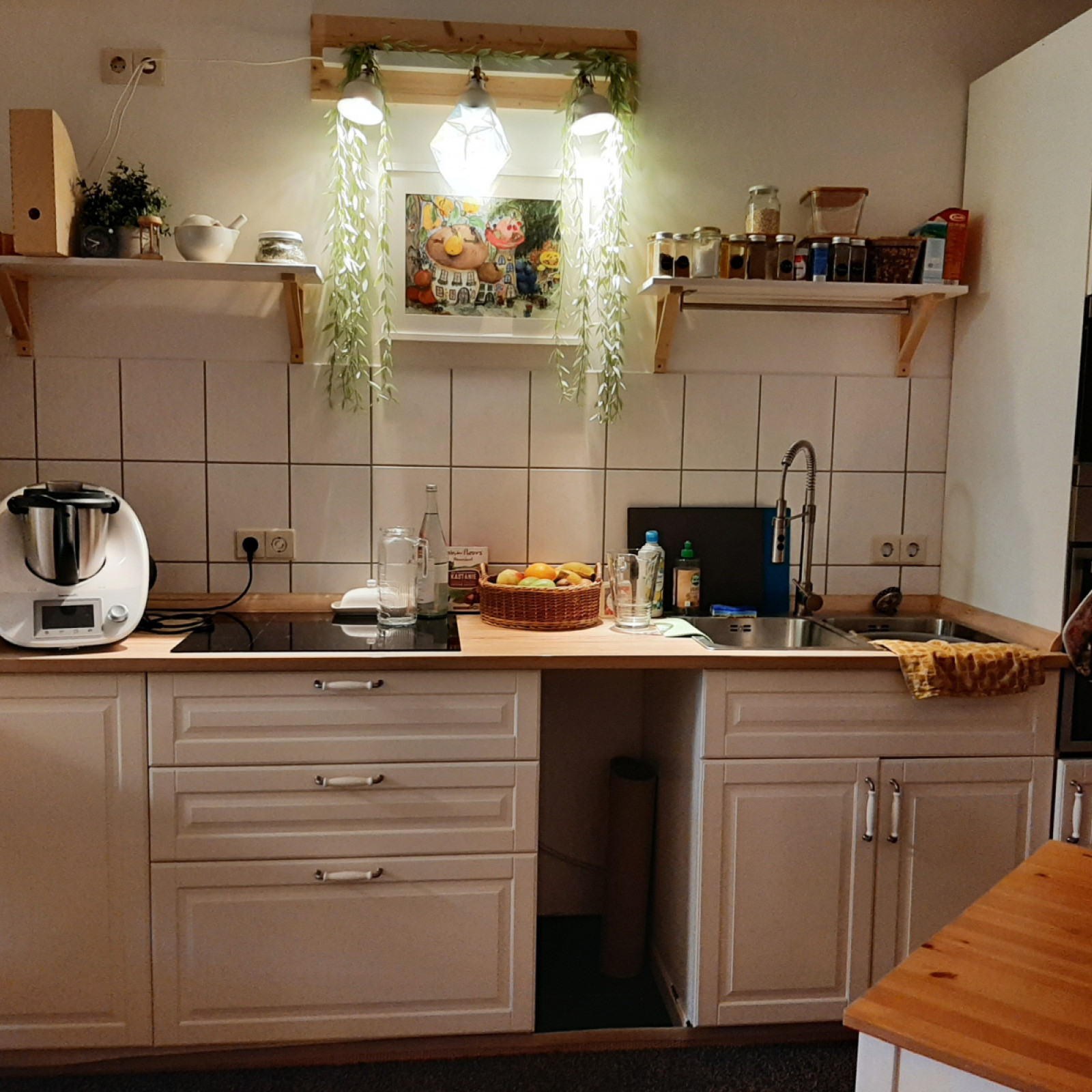 An all das ist in der schlichten Küchenzeile mit Induktionsherd, Backofen und Spüle gedacht.