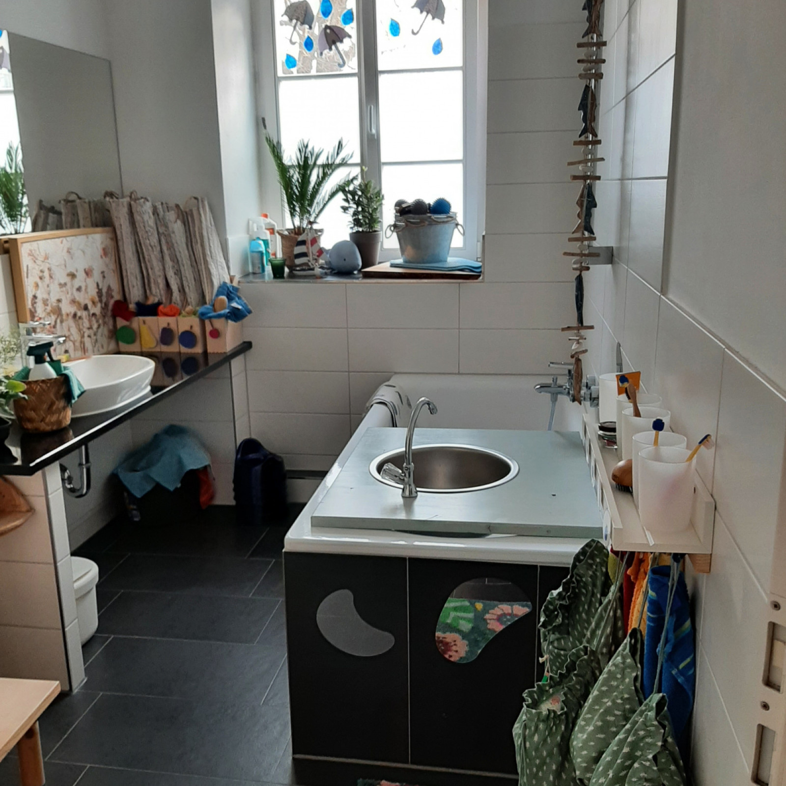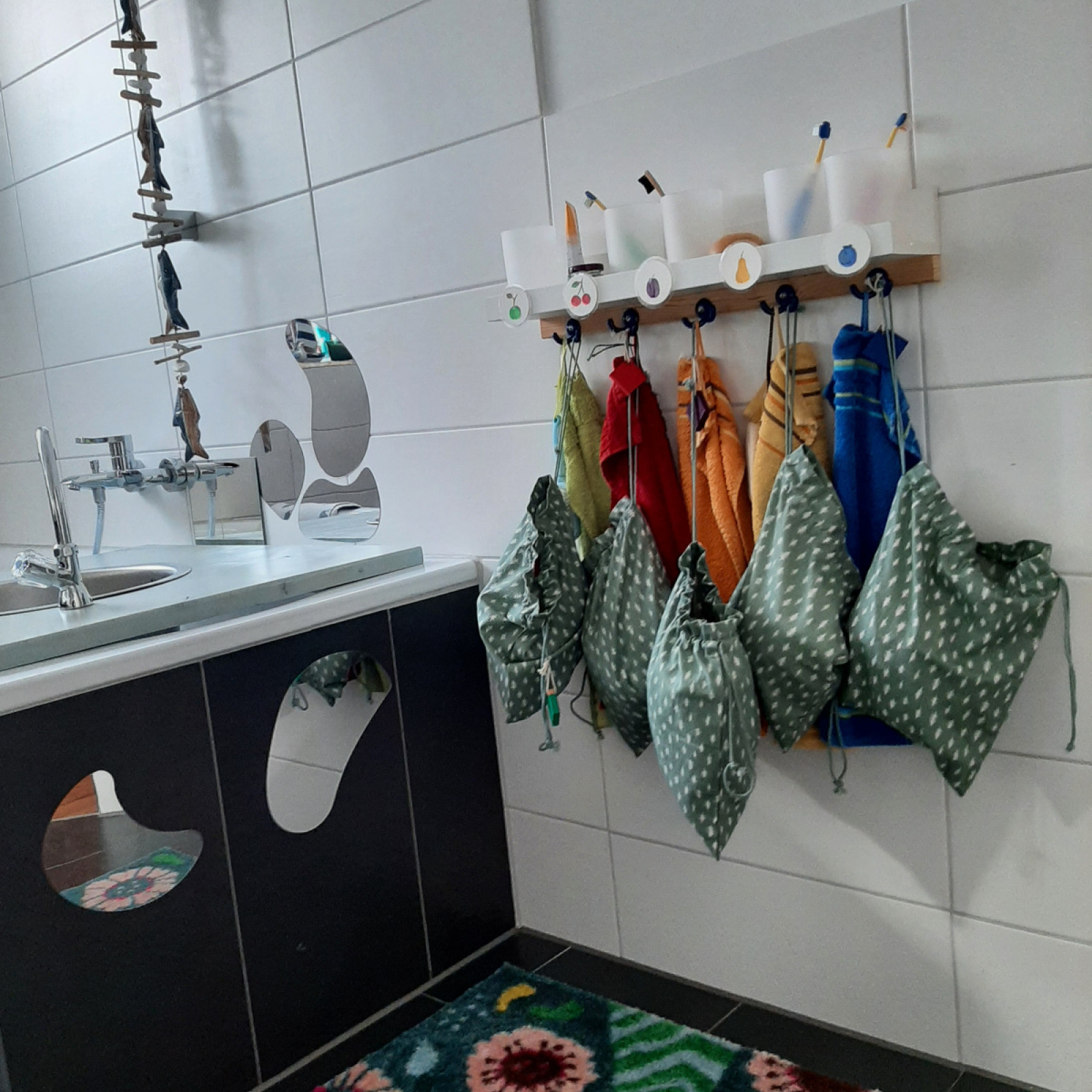 Die Kinder finden hier ihr Handtuch und ihren Zahnputzbecher