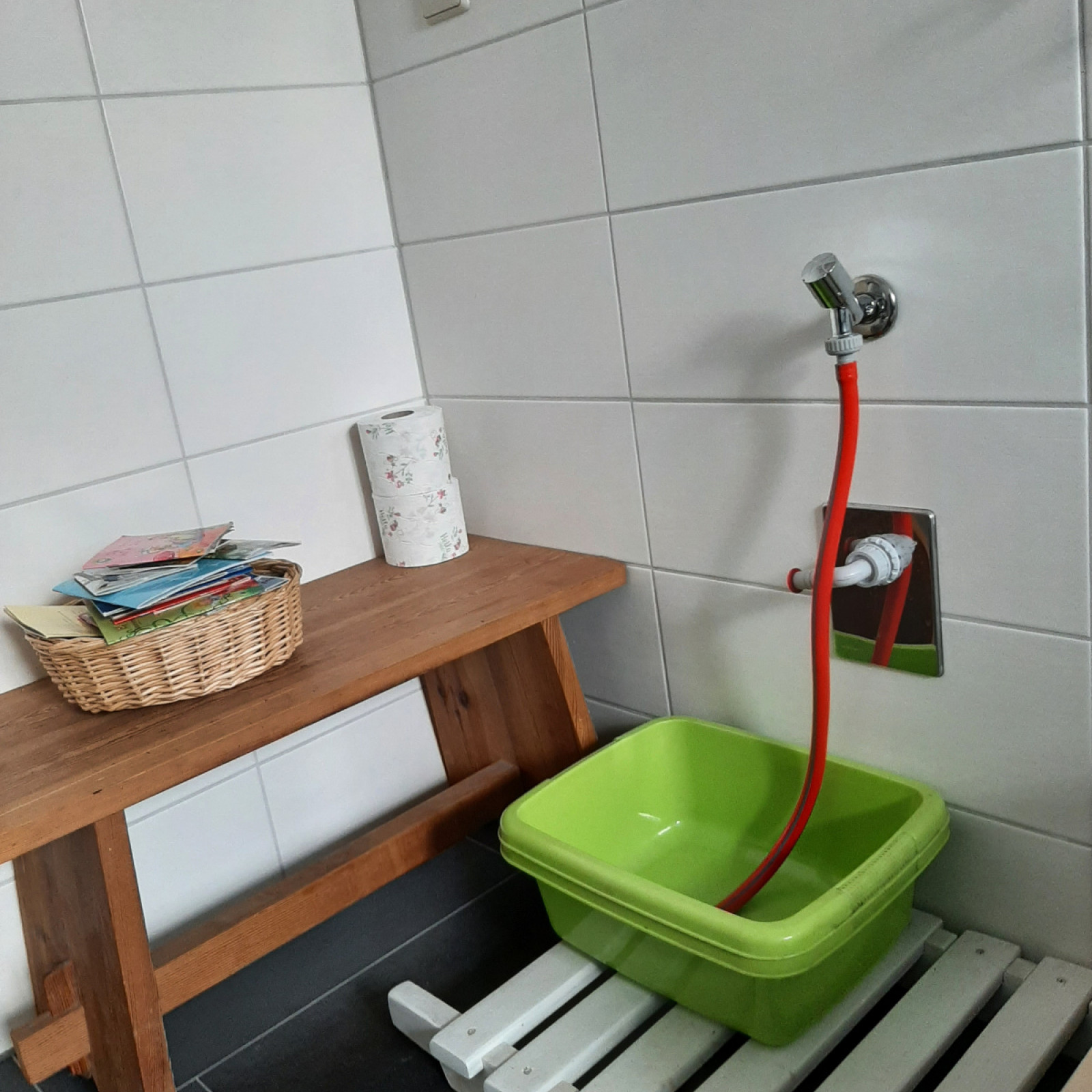 ist der selbst eingebaute Waschtisch mit Wasserhahn zum drehen ,als