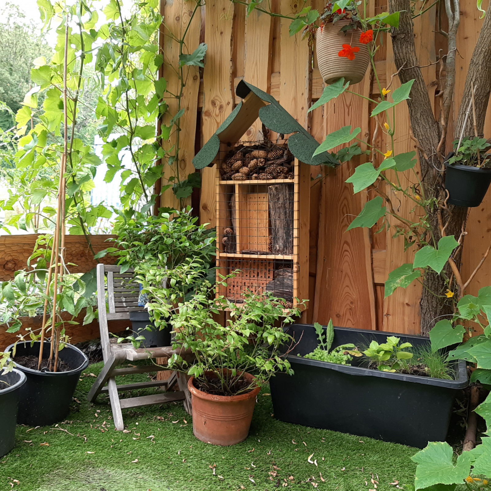 anbauen, für Tiere, Futter- und Nistmöglichkeiten schaffen, einen kleinen